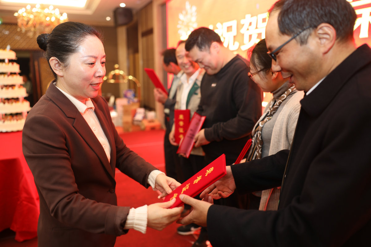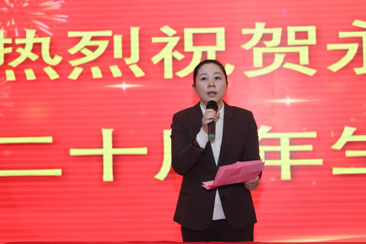 活動(dòng)現(xiàn)場彩旗飄揚(yáng),7幅“貢獻(xiàn)獎(jiǎng)”獲得者個(gè)人事跡展架及公司老照片展吸引著新老員工的眼球,員工們從一張張照片中了解了公司的創(chuàng)業(yè)之路和文化信念;顒(dòng)開始前,總部專門安排講解人員帶領(lǐng)老廠區(qū)員工參觀公司展廳及生產(chǎn)車間,詳細(xì)向他們介紹了新項(xiàng)目的生產(chǎn)狀況與處置種類。活動(dòng)伊始,員工通過公司形象宣傳短片了解了公司的發(fā)展歷程、發(fā)展成果和前景展望等。宣傳片結(jié)束時(shí),現(xiàn)場的員工代表全體起立,高呼“祝永葆環(huán)保二十周年生日快樂”,獻(xiàn)上了全體員工的美好祝福和期盼。隨后,由市總工會(huì)輕騎兵活動(dòng)專門精心準(zhǔn)備了一場充滿青春與活力的的文藝匯演:大氣磅礴的紅歌《把一切獻(xiàn)給黨》、歡樂時(shí)刻的《滑稽小丑》、熱情洋溢的舞蹈《燈火里的中國》……豐富多彩的節(jié)目博得現(xiàn)場陣陣掌聲,由公司員工合唱歌曲《幸福聯(lián)塑為你而來》將慶典現(xiàn)場氣氛推向高潮。晚宴現(xiàn)場,公司總經(jīng)理王桂玉女士致感謝辭,王總回顧了公司20年來的發(fā)展歷程,并代表公司對全體員工表示誠摯的謝意,承諾未來將提供更多、更大的平臺(tái)與員工共發(fā)展。為表彰和激勵(lì)在公司創(chuàng)業(yè)、發(fā)展歷程中做出突出貢獻(xiàn)的7位員工,隆重頒發(fā)了“貢獻(xiàn)獎(jiǎng)”證書和獎(jiǎng)品,感謝他們對公司發(fā)展付出的汗水和努力。在一首集體合唱的“生日快樂歌”中,領(lǐng)導(dǎo)與員工分享了生日蛋糕,正式拉開了慶祝晚宴的序幕。