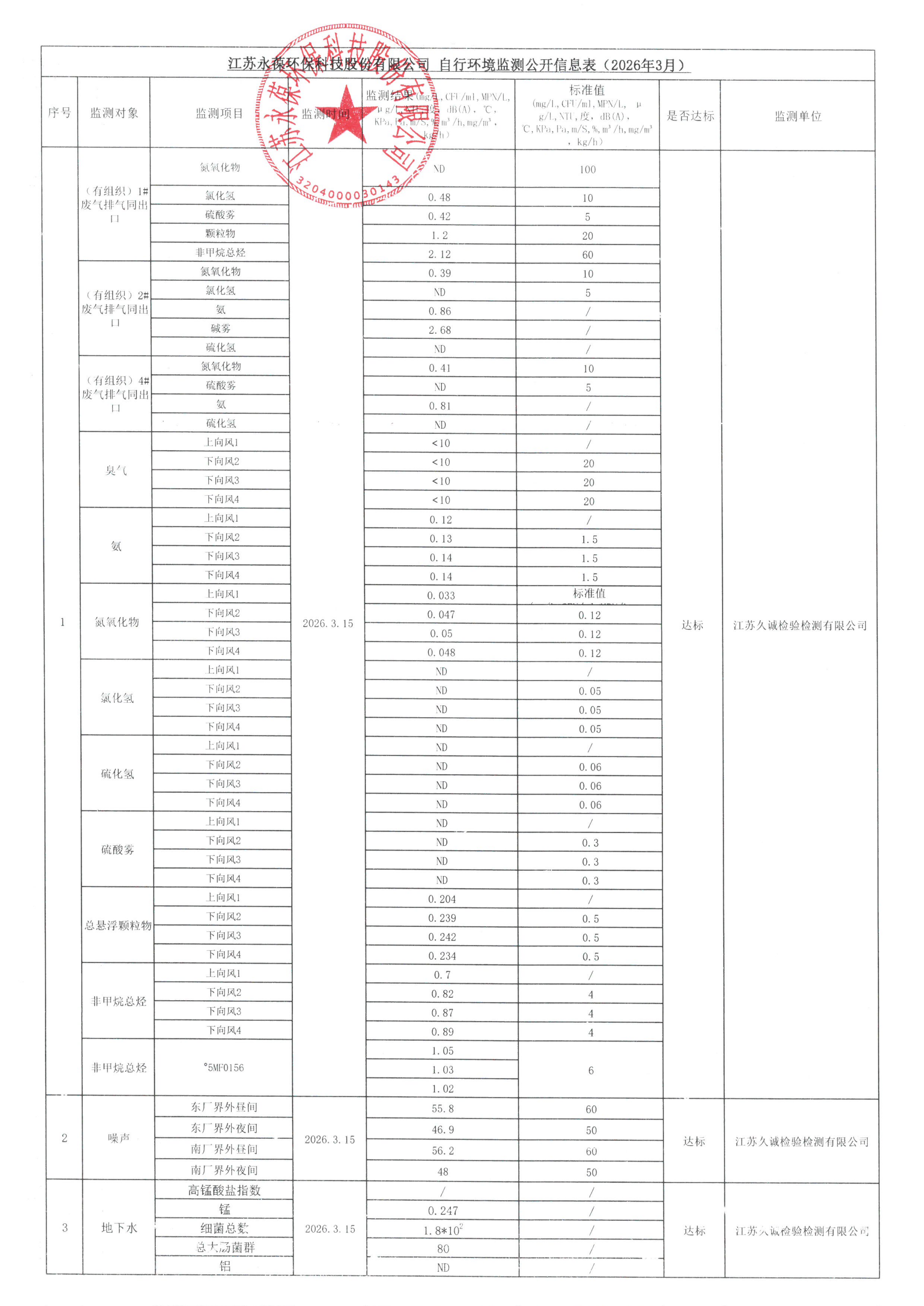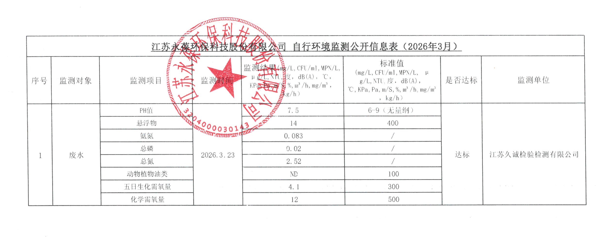 江蘇永葆環(huán)保自行環(huán)境監(jiān)測公開信息